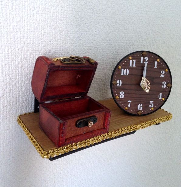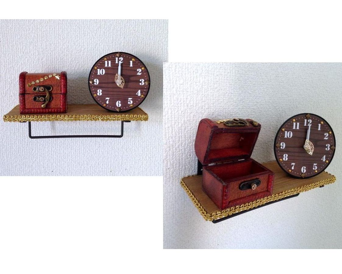 フックバー ウォールシェルフ 2way 時計◆レトロ 小物入れ 時計 セット
