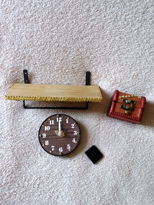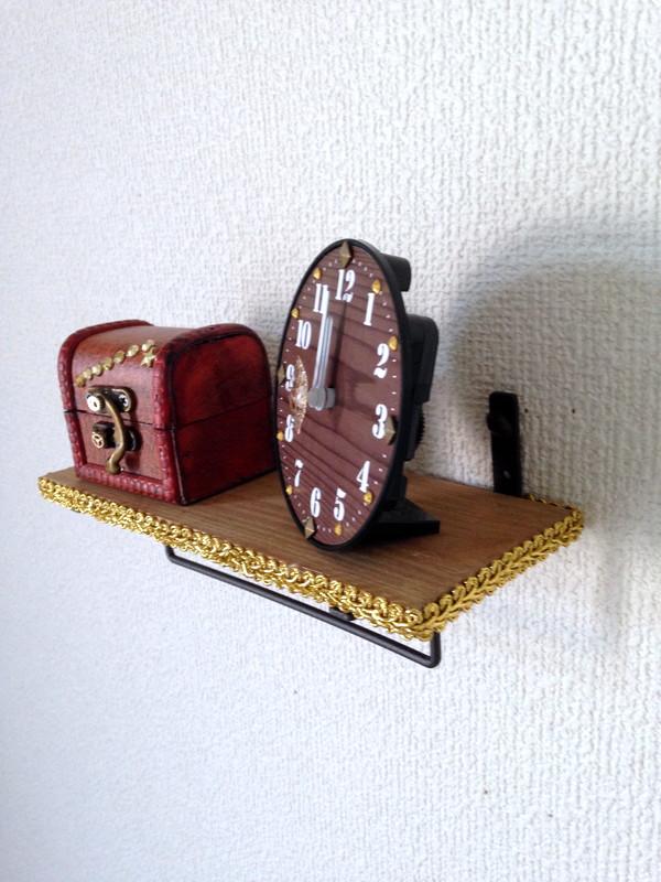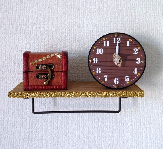 フックバー ウォールシェルフ 飾り棚 2way 壁掛けにもなる 時計 レトロ 小物入れ セット