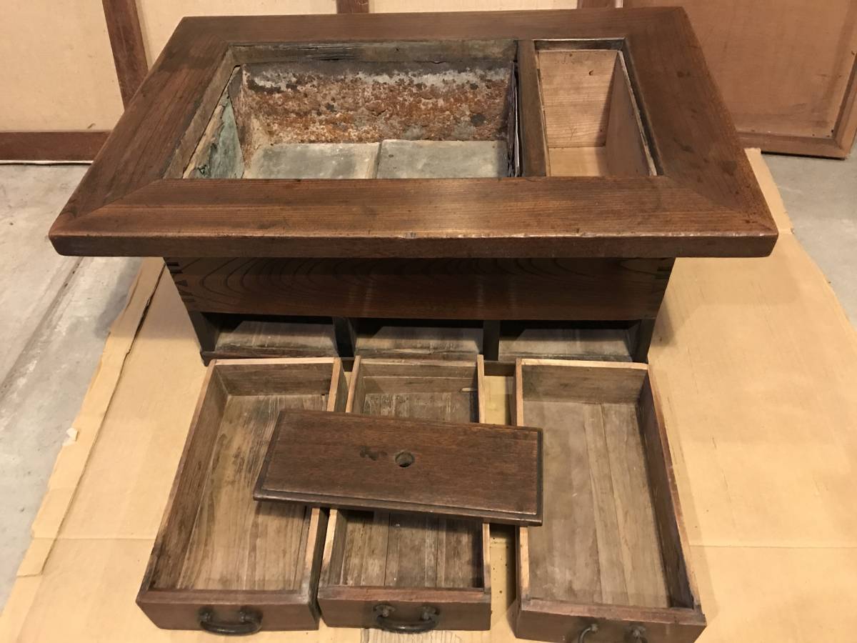 火鉢 箱火鉢 長火鉢 引き出し 囲炉裏 木製 アンティーク 7