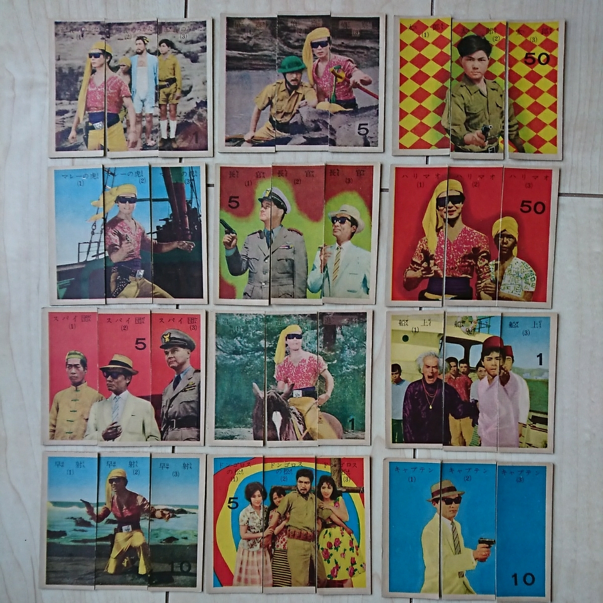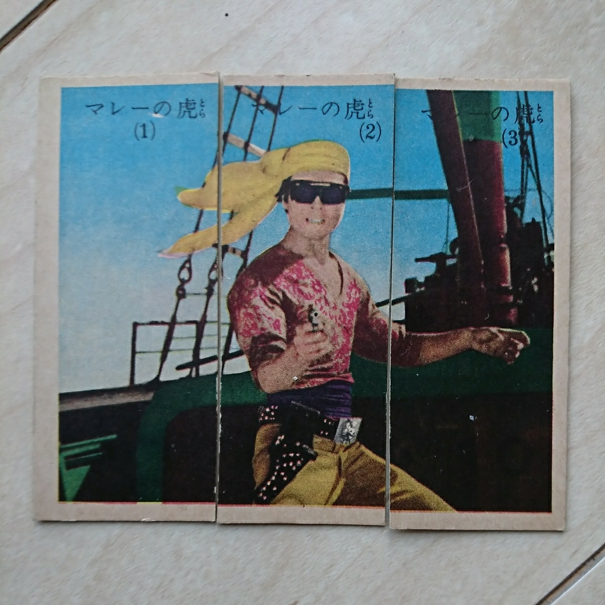 が懐かしい、三橋美智也が唄う主題歌が思わず郷愁を誘う、全実写版『快傑ハリマオ』の絵合わせです。