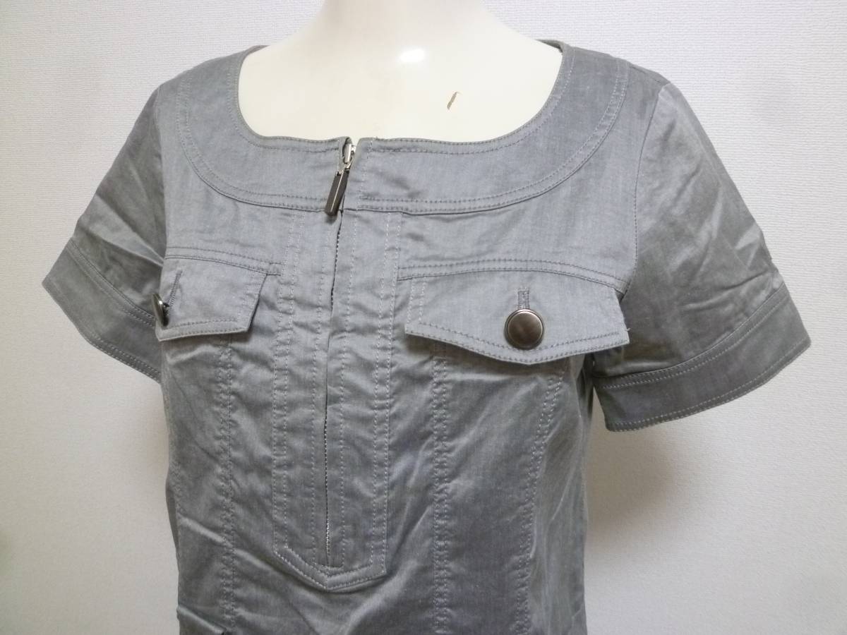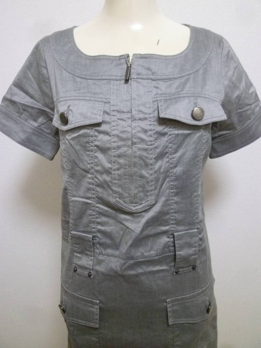 PROPORTION BODY DRESSING/プロポーションボディドレッシング♪グレーデニム風素材胸元ジップシャツワンピース2/ミリタリー系♪131