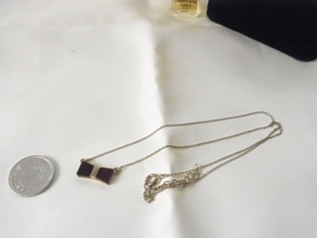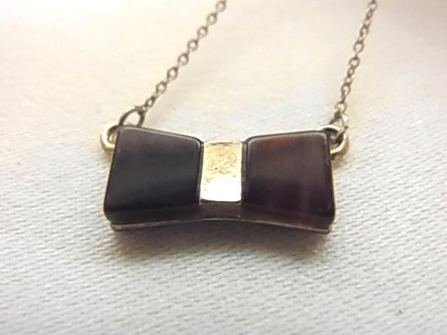 KAZA ブラウンカラーのストーン リボンのように見えるデザインのトップ アジャスターにKAZAの刻印 ネックレス◎