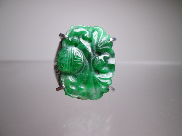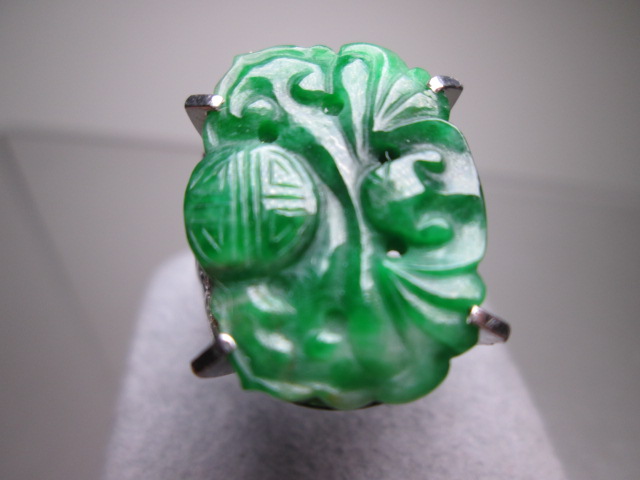 【江月】☆PM 850 本翡翠 模様彫刻のリング 13,42g 15号