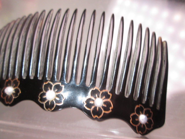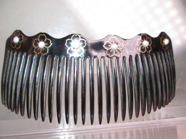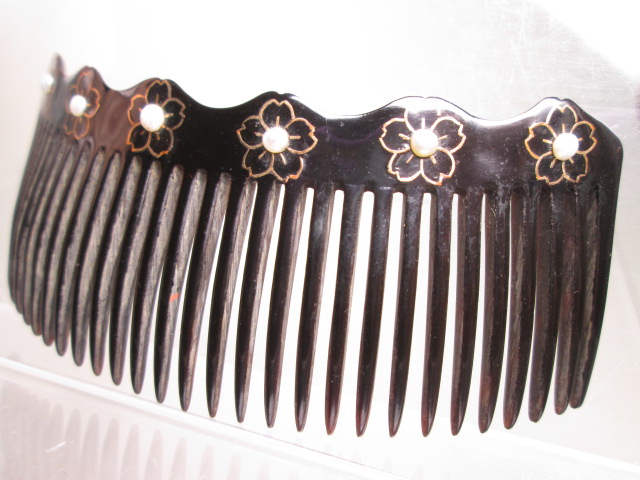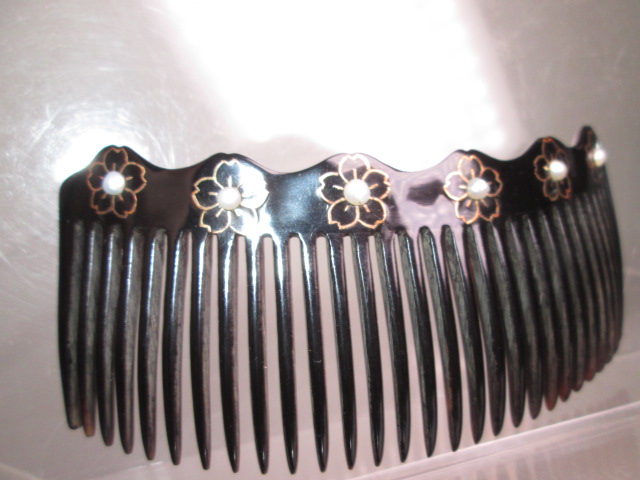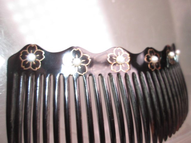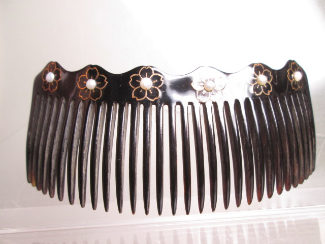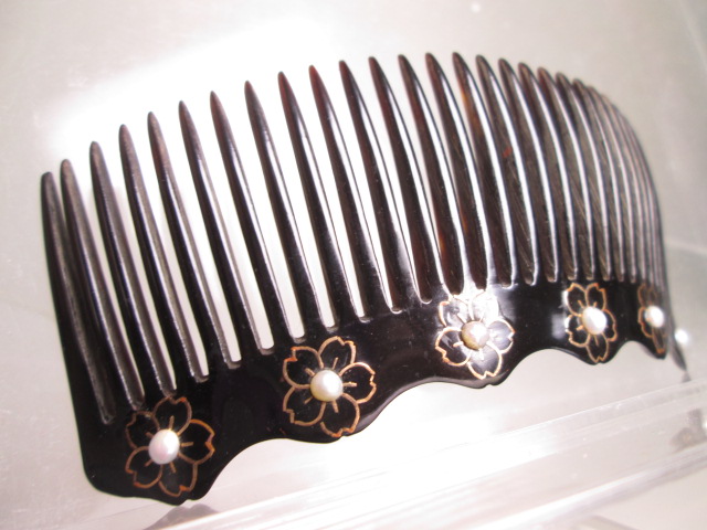 【江月】アンティーク・本鼈甲 本真珠飾り 桜文 金細工の櫛