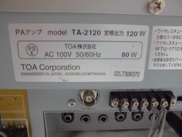 TOA PA アンプ   屋内設備用アンプ  ジャンク品