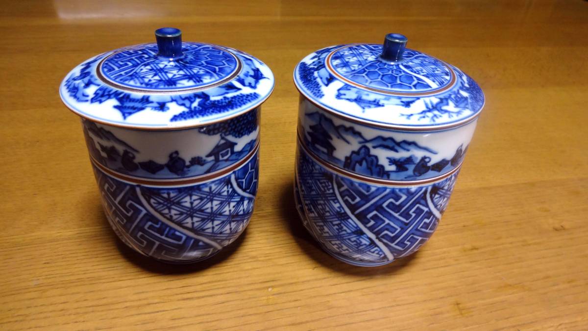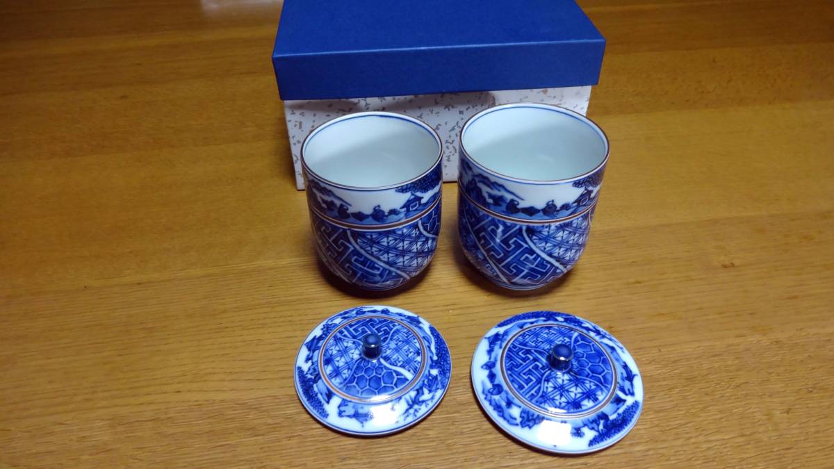 美濃焼 喜山窯 藍染 組湯呑(大、小)未使用品です。