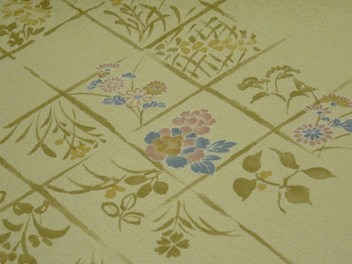 ★金糸がラメのように少し織り込まれた草花と鳳凰の細かい地紋の生地に、
