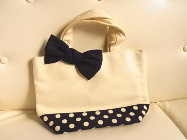 デタールDE TER NL アイボリーホワイト×ブラック 水玉 可愛いトートバッグ
