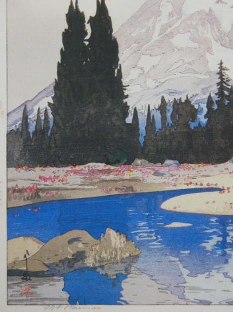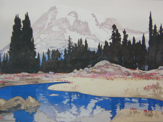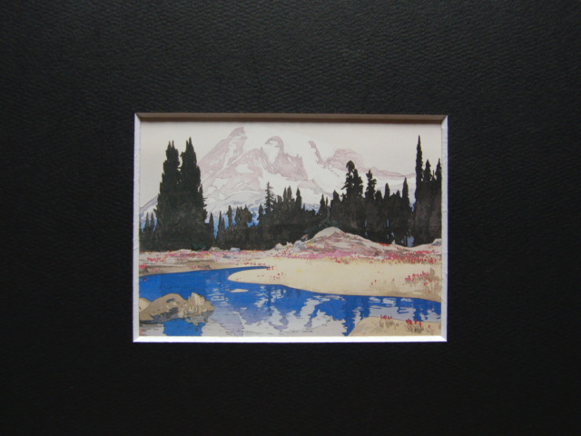 吉田博、【レニヤ山】、希少画集画、高級新品額・額装付、状態美麗、送料無料