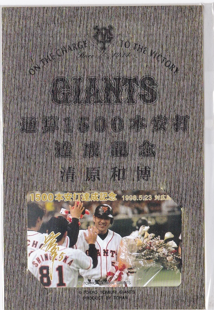 読売ジャイアンツ 巨人 清原和博 通算1500本安打達成記念 のテレホンカードです。