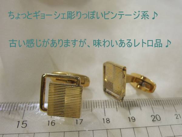 画像の、マニッシュ系シンプルビンテージなデザインが素敵な金メッキを施したシルバー製のカフリンクスカフスボタンです☆ビンテージコンディション古いお品で、おそらくは1,2度のused、保管が長いのでやや経年感は否めませんが状態はなかなか良いです☆古いですがかえって着こなれた感じを演出できます♪昔、日本やアメリカのデパートやショップで購入したコレクションの中から、状態の良いシンプルリッチなデザインものを出品です♪雑多に箱に入れての自宅保管なので、やや小キズやスレなども含めて経年感等はあるかもですが、なかなか状態の良いお品でお薦めです♪