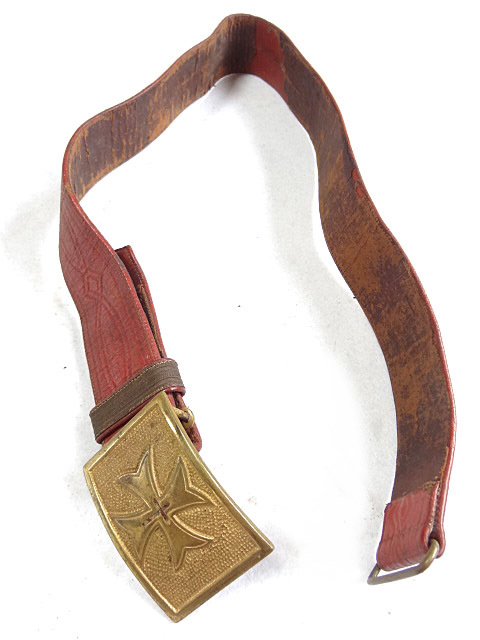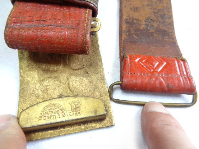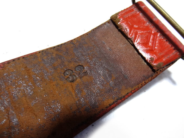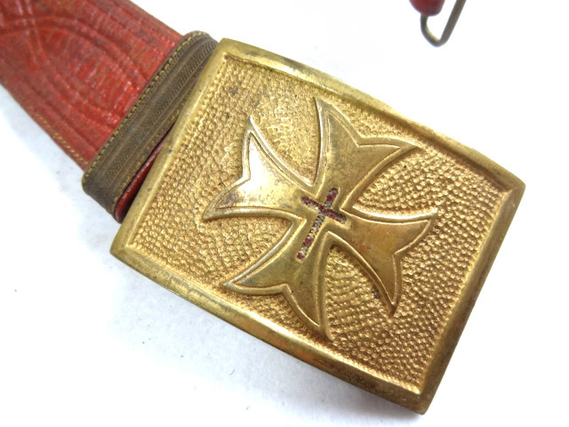 ビンテージ フリーメイソン 秘密結社 赤 革 レザー ベルト クロス 印字 真鍮 スクエア バックル レア 希少 ソード チェーン 雰囲気 金具