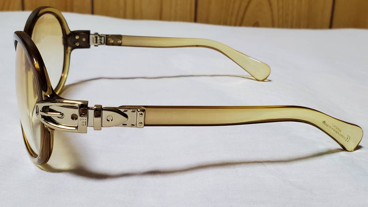 正規 新古 激レア グッチGUCCI メタルベルトバックル クリアブラウン グラデーションサングラス グラマラス ビッグラウンドレンズ 男女兼用