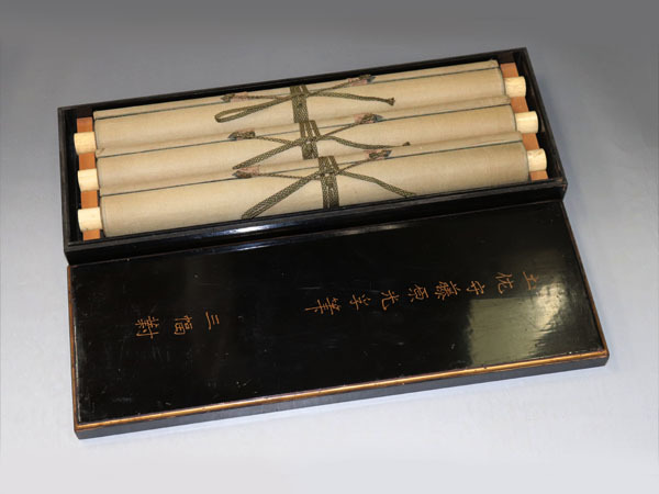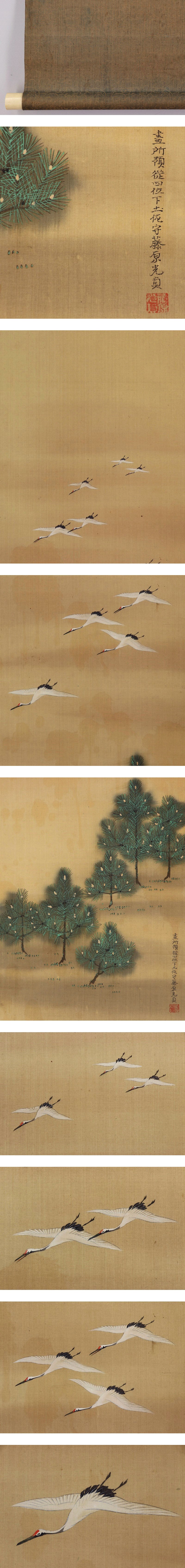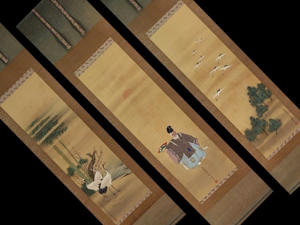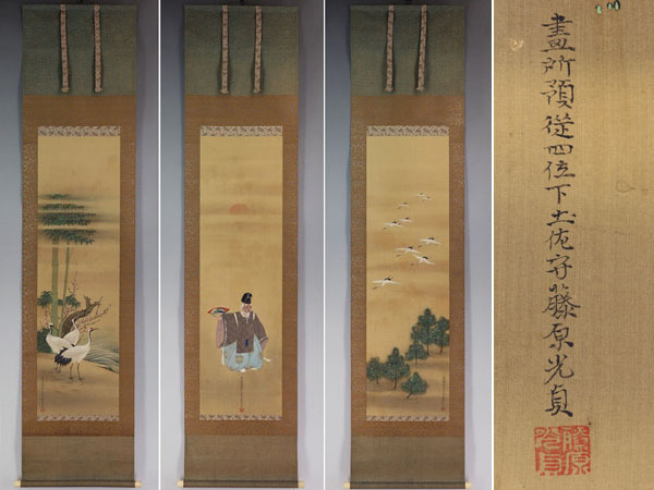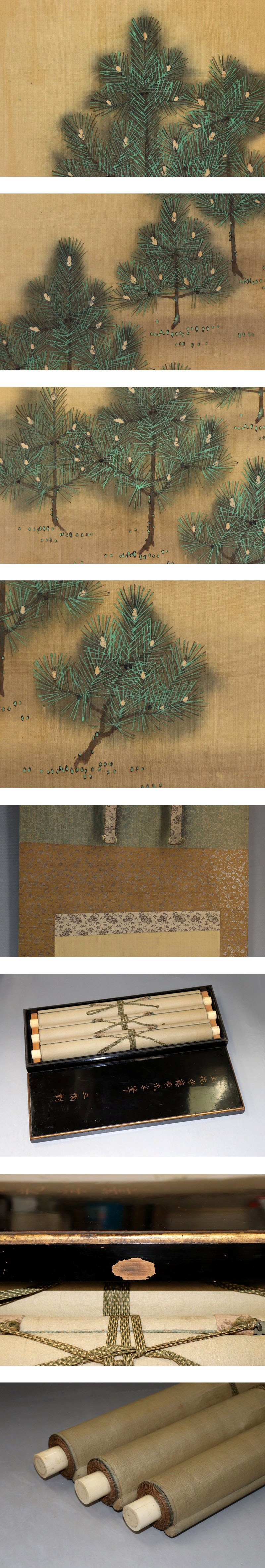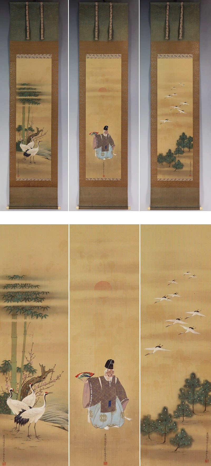 | №2103113【真作】土佐光孚【三対幅・慶祝図】◆絹本◆合箱◆掛軸 | |