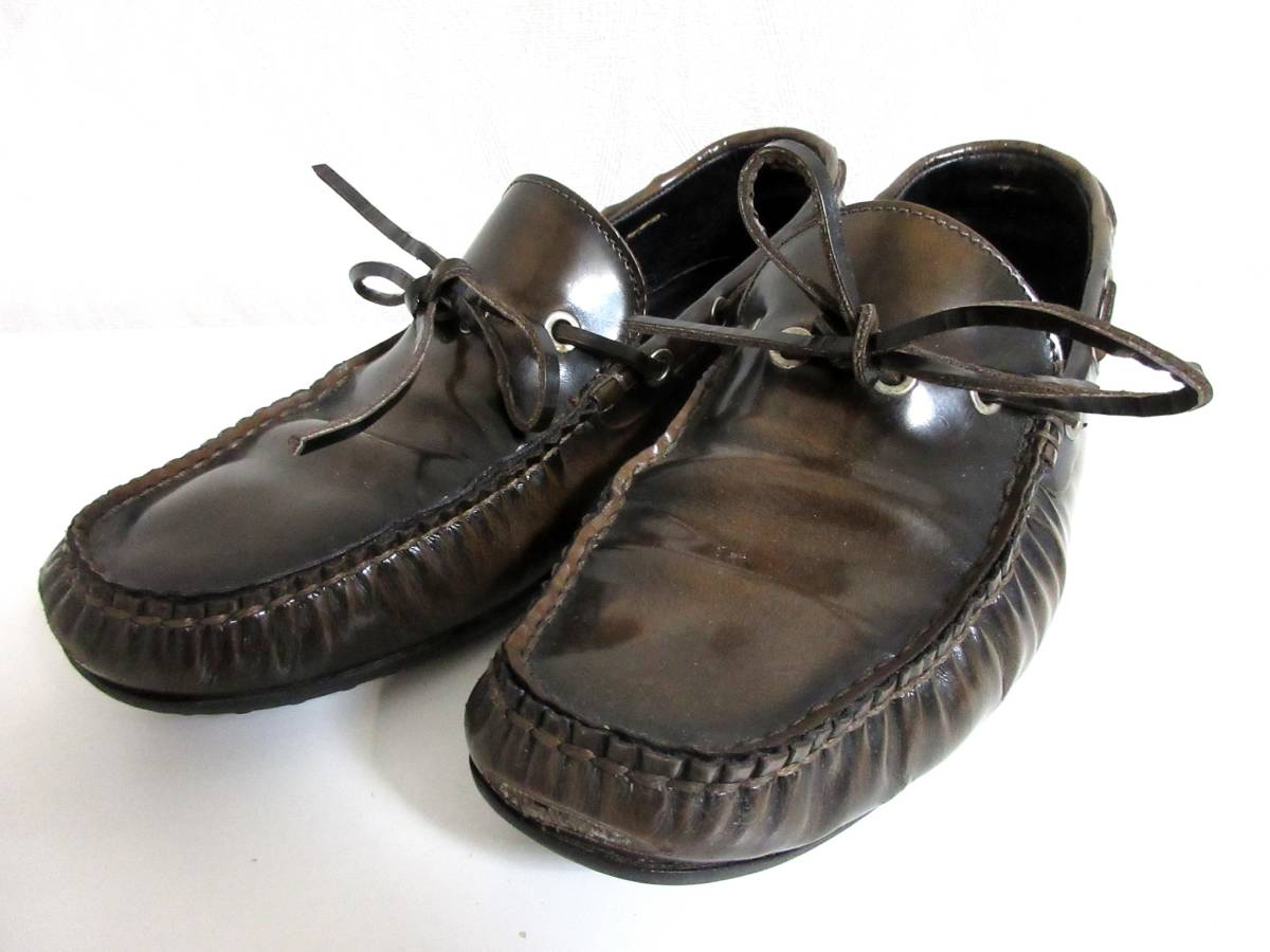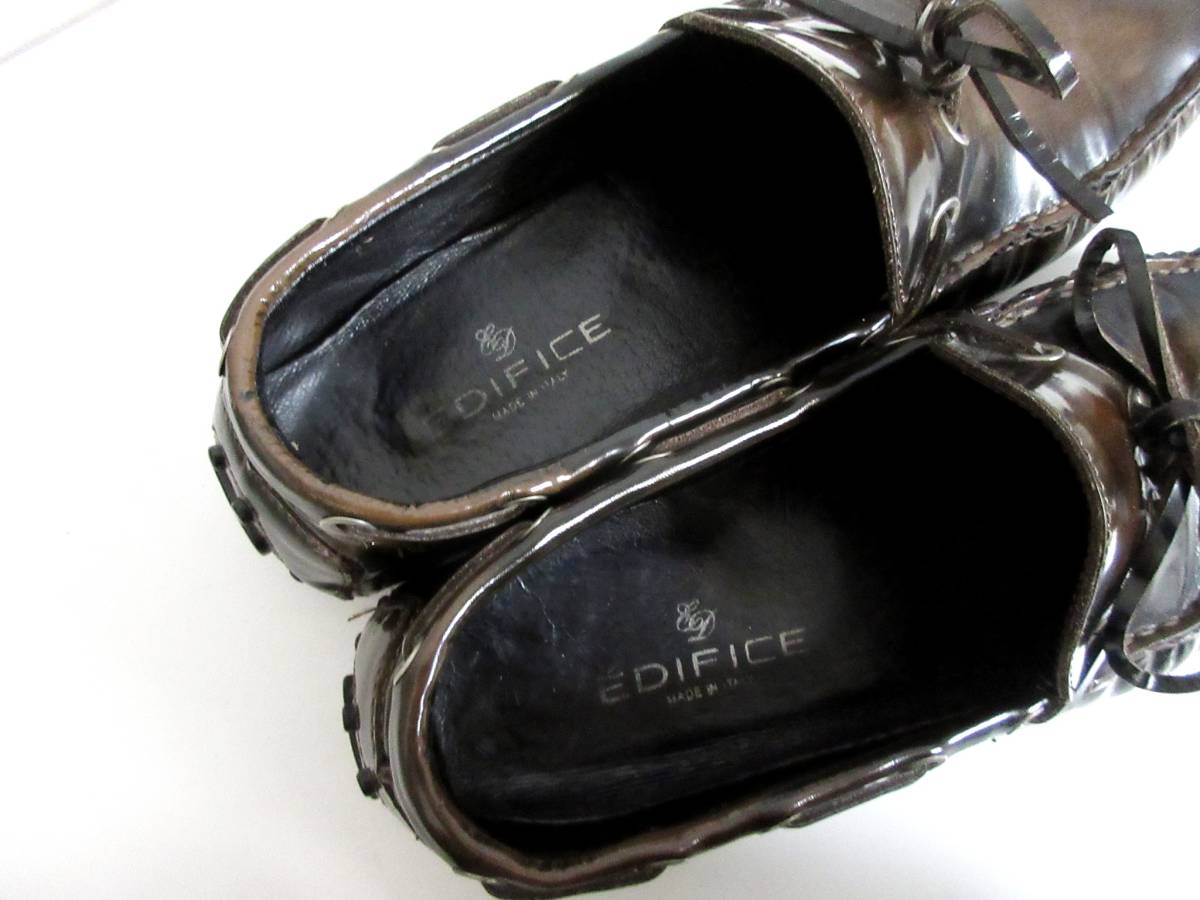 エディフィス EDIFICE レザー ドライビングシューズ 茶 ブラウン 40 北2740