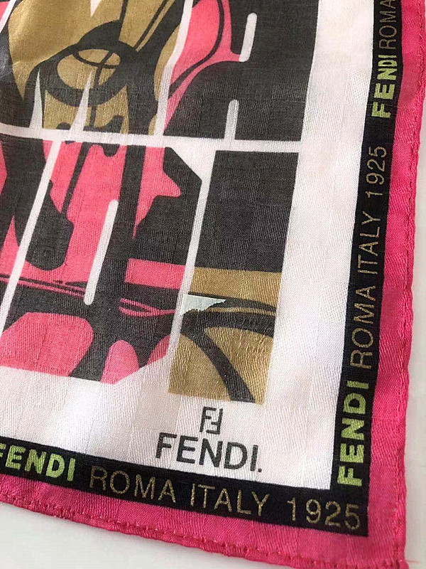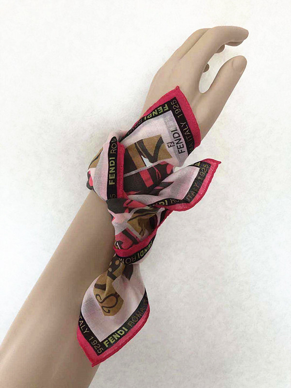 正規品鑑定済みフェンディFENDI◆【レア柄】ズッカ柄&チェック柄織りハンカチミニスカーフストール★膝掛け