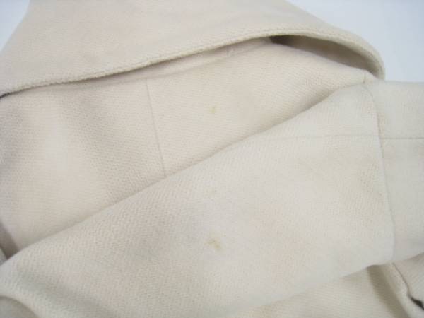 ■状態:USEDです。薄汚れ・黒ずみ箇所・毛玉の付着等使用感がございます。襟裏に2センチ程の薄ジミがございます。背中に8ミリ程のシミがございます。袖に1センチ程のシミがございます。その他薄ジミ箇所がございます。