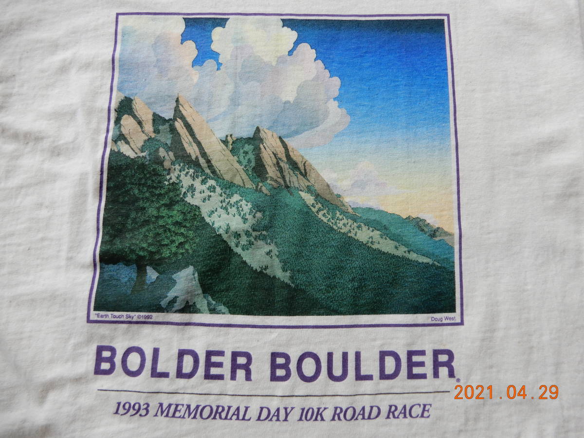 穴無し、生地肉厚の美品。多分ワンウォッシュ程度。ナイキが関わっていたロードレース大会のTシャツです。グラフィックがかなり良し。プリントの色味も良く、希少かと思います。完璧。