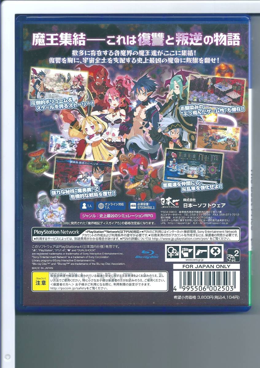 ●JANコード4995506002503 t1 ☆PS4 魔界戦記ディスガイア5 The Best Price ●商品の状態 ソフトは使用感少なく状態良好ですが、ケースにスレ・イタミがあります。説明書がないのは仕様です。 |