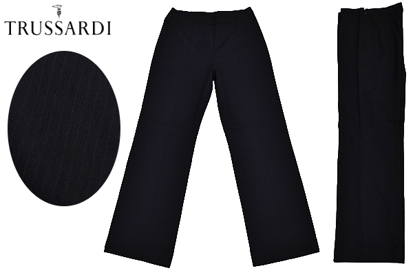 B-0031★超美品★TRUSSARDI トラサルディ★女性 レディース 通年 正規品 ネイビー濃紺色 ピンストライプ スラックス パンツ 40
