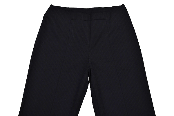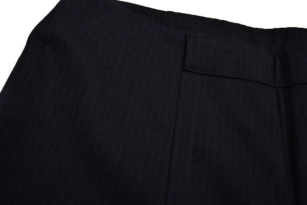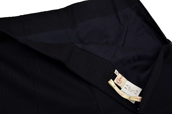 ネイビーカラー ストライプ ウエスト左横ファスナー スラックスパンツ 裏地裾まで