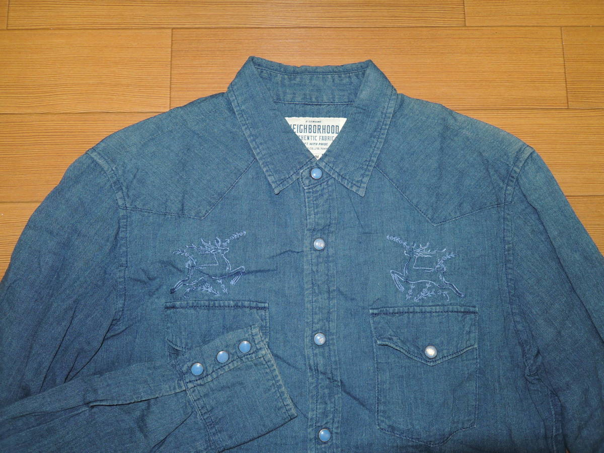 NEIGHBORHOOD ネイバーフッド 鹿 刺繍 デニムシャツ M ステッチ /