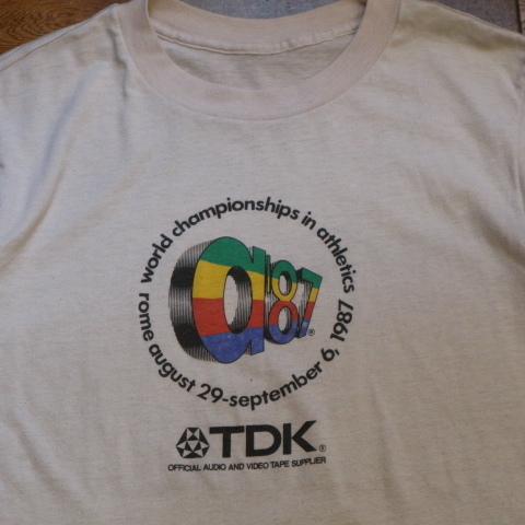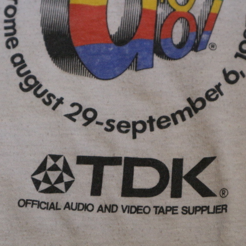 80s TDK a'87 Tシャツ ベージュ カセットテープ 企業ロゴ USAイベント ヴィンテージ