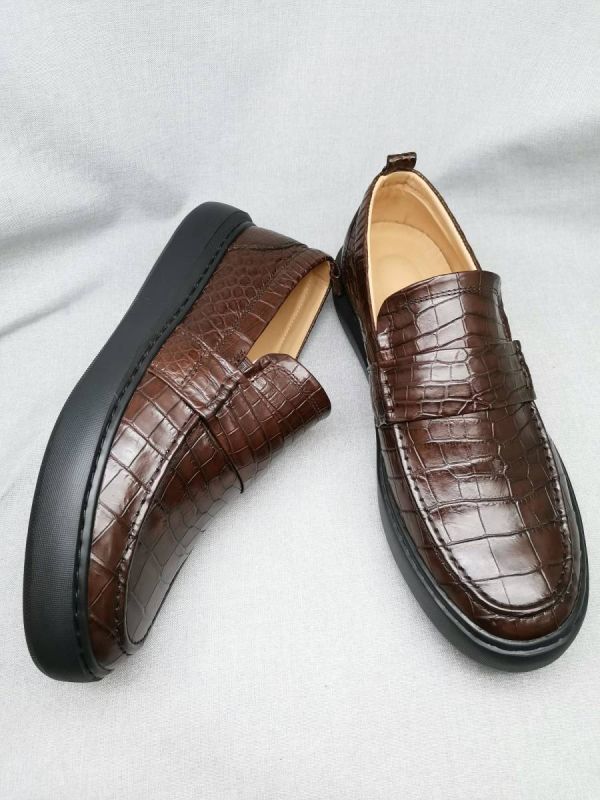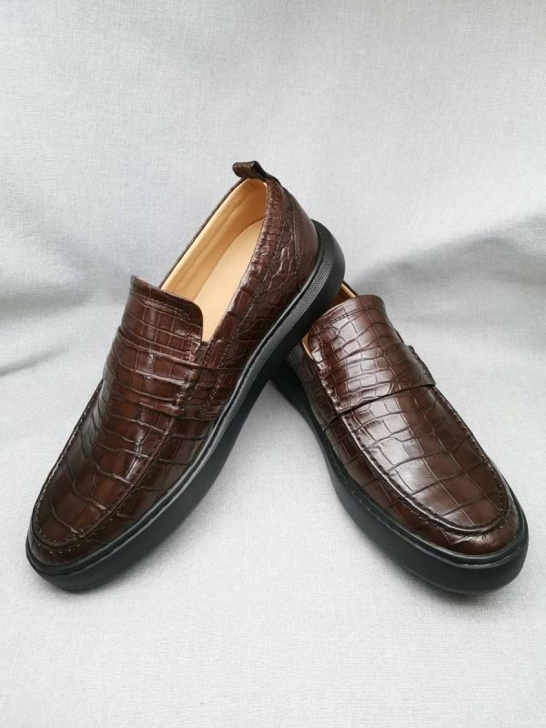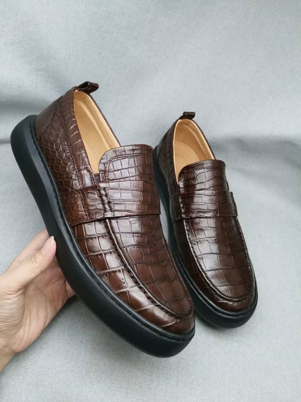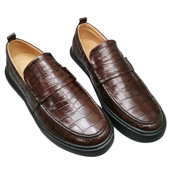 ☆メンズ 紳士靴 ワニ革 24~27cm レザー ローファー モカシン メンズシューズ カジュアルシューズ ビジネスシューズ 幅広 丈夫 プレゼント