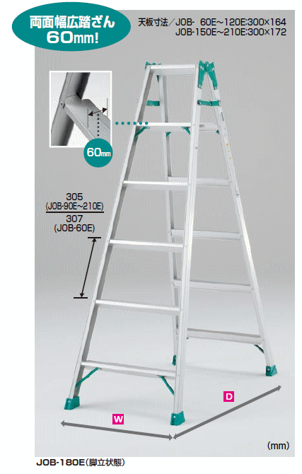 | ●脚立時でもはしご時でも昇降しやすい両面幅広踏ざん(60mm)になりました |
