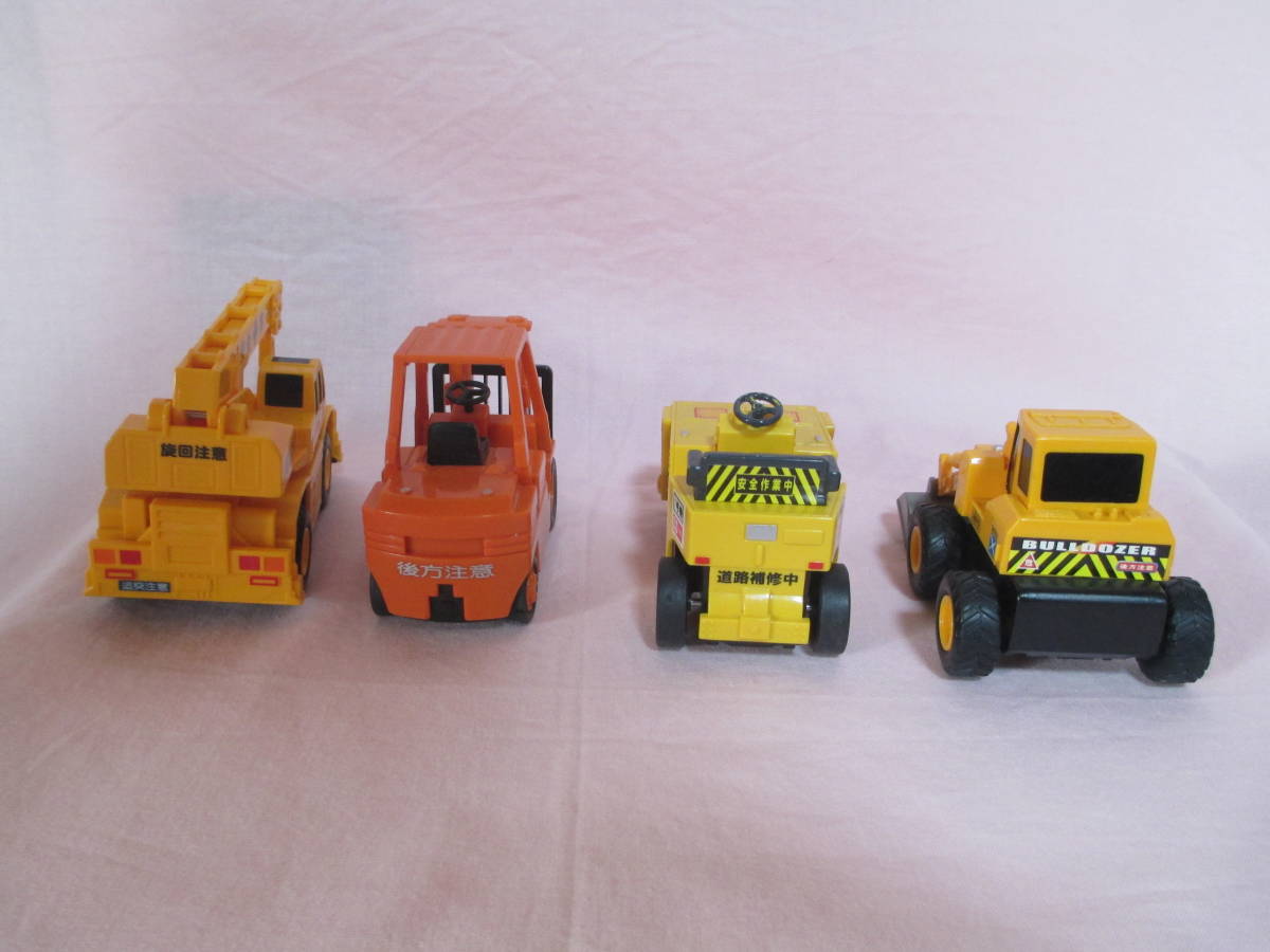 建設車両 フォークリフト クレーン車 ブルドーザー ロードローラー プルバックカー おもちゃ 玩具 計4台セット です