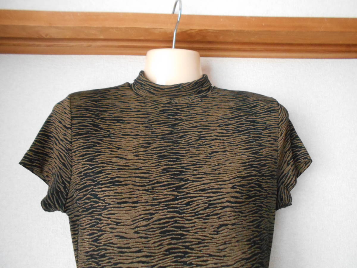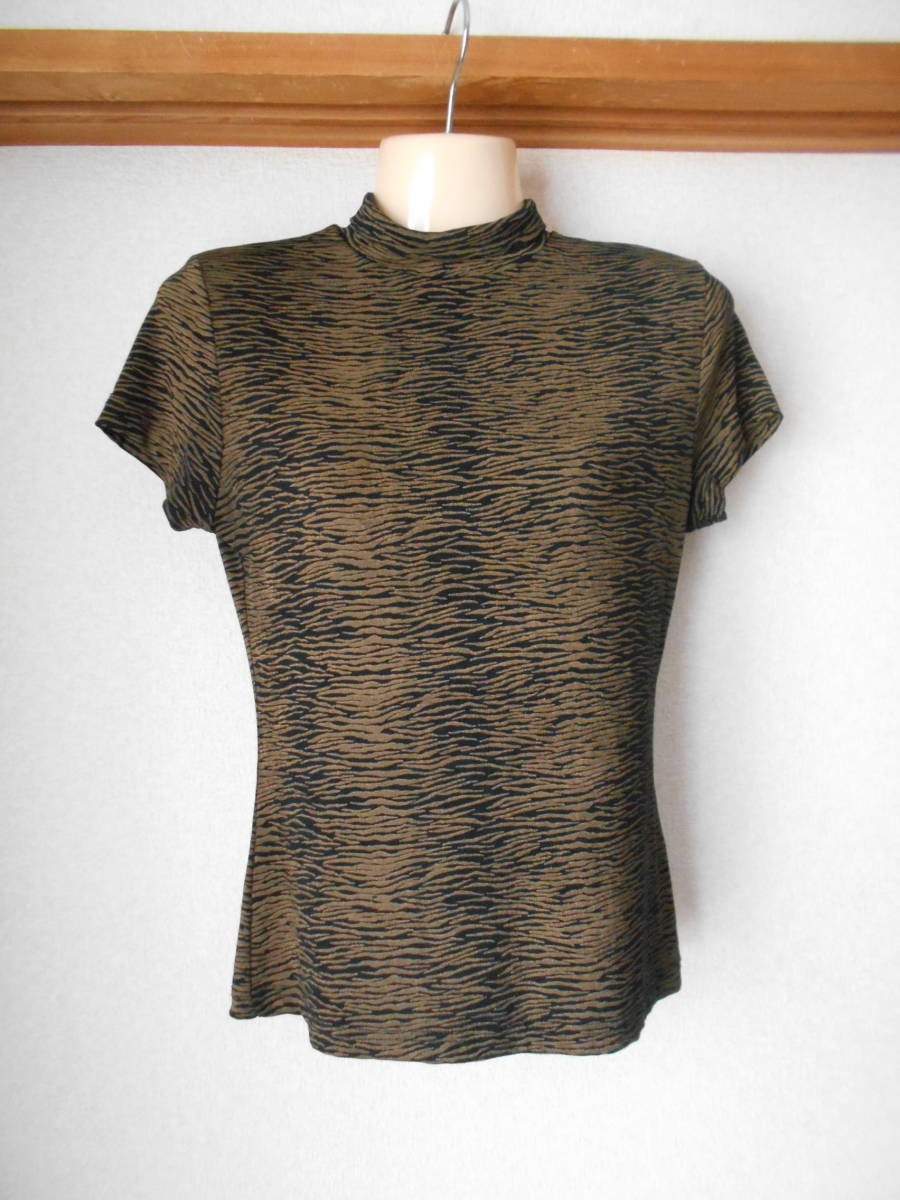★美品★ゼブラ柄・ストレッチ風の素材 半袖シャツ☆カットソー  Мサイズ  ★色は、黒×深緑系