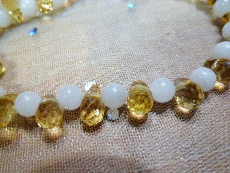 シトリンしずく ピンクカルサイト ブレスレット
