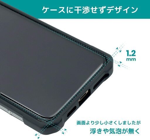 各種類のケースを付けテキストにより、フィルムの剥がれ・浮き防止とケースとの干渉を防ぐため、画面より一回り小さいデザインを採用され、99%以上のケースとの相性が良くて干渉はしません。