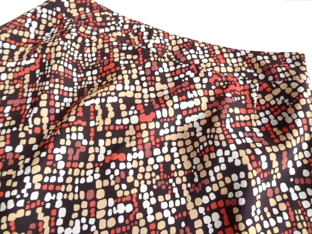 sutseso スチェッソ ワールド 幾何学柄 ティアード スカート 40 日本製 茶 膝丈 シフォン