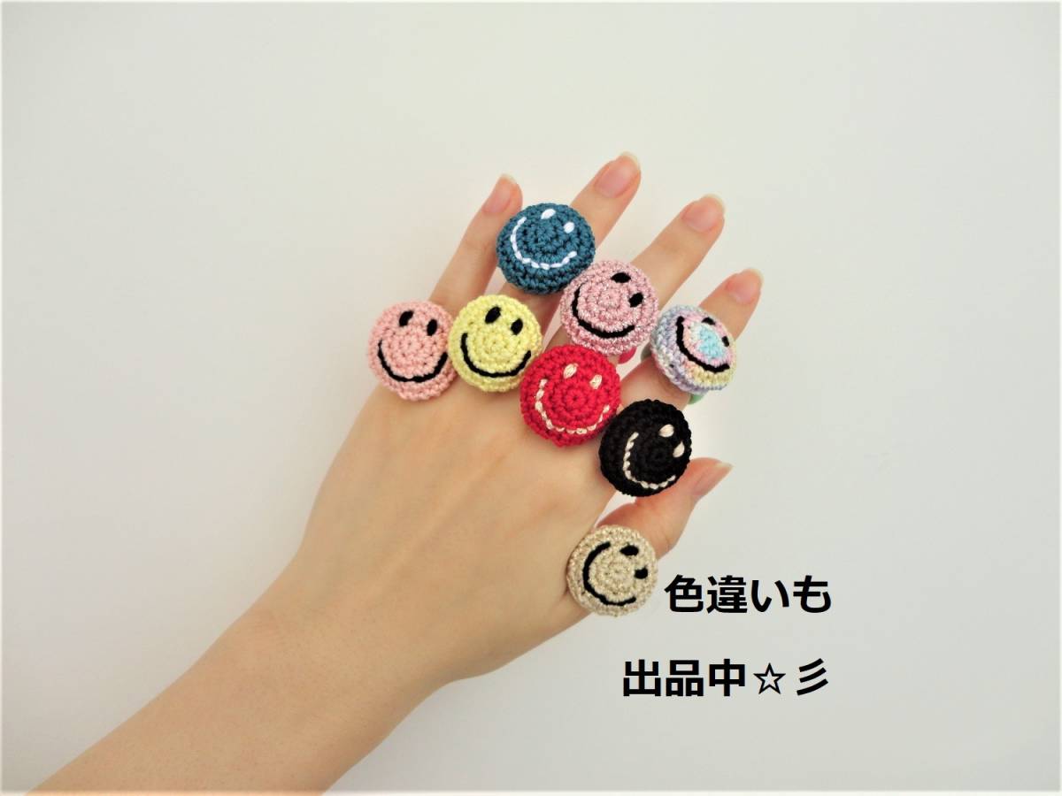 ニコニコ(^-^)スマイルのヘアゴム*レース編み*ハンドメイド*刺繍*a357