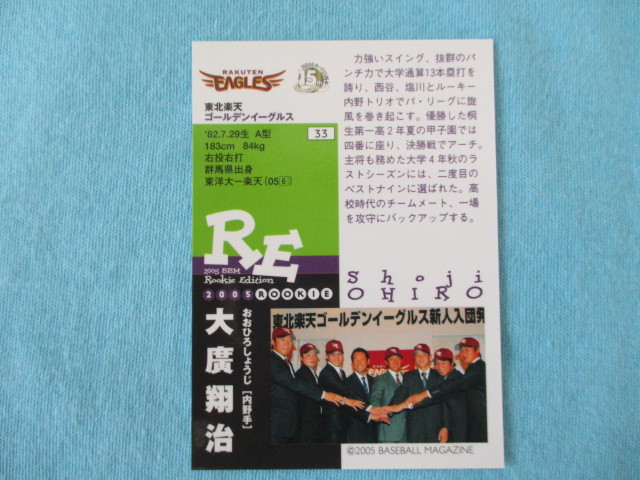 ★BBM 2005★ルーキー エディション〔33 大廣翔治 東北楽天ゴールデンイーグルス〕レギュラーカード トレカ♪