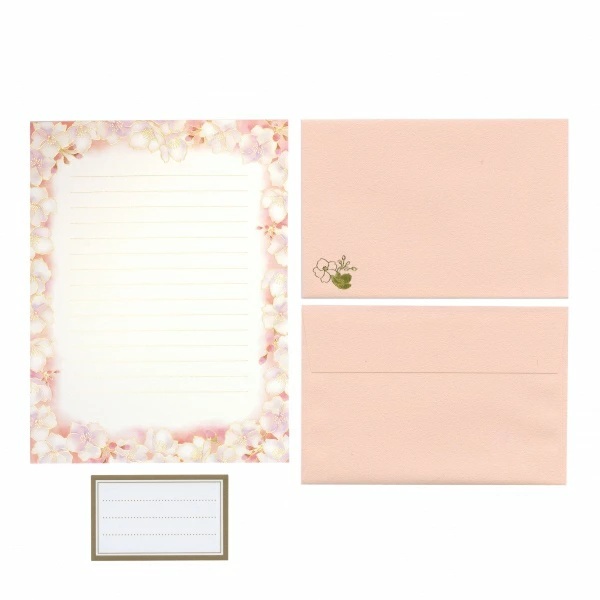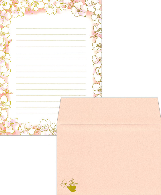 @【即決】◆桜(さくら)レターセット◆ 金箔 箔押し オシャレ 豪華 春 お便りセット 手紙 便箋 封筒 花柄 華やか メッセージ // TL050