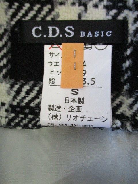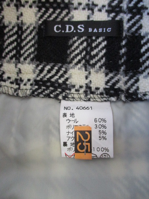 ★C.D.S BASIC レディース チェック柄 台形ミニスカート 白×黒 S