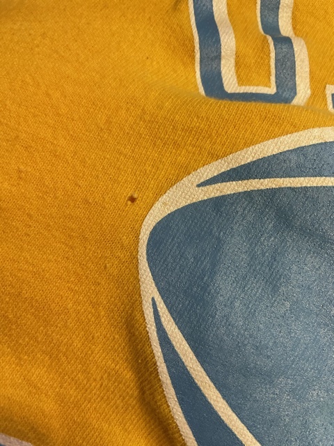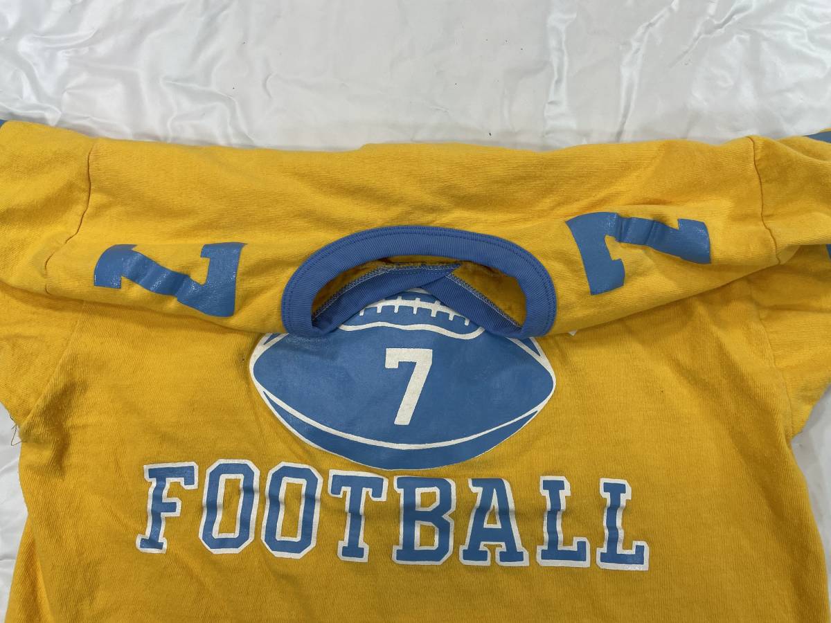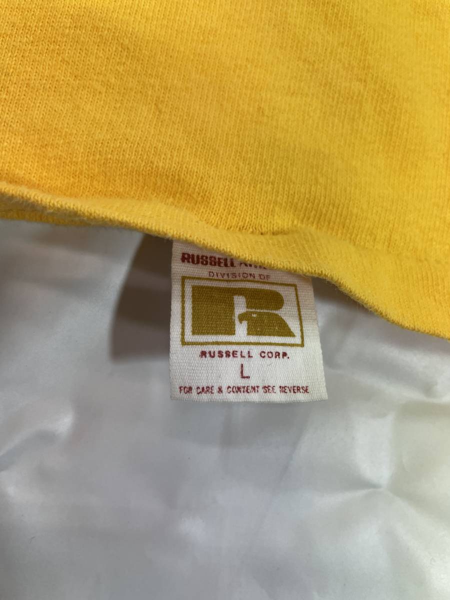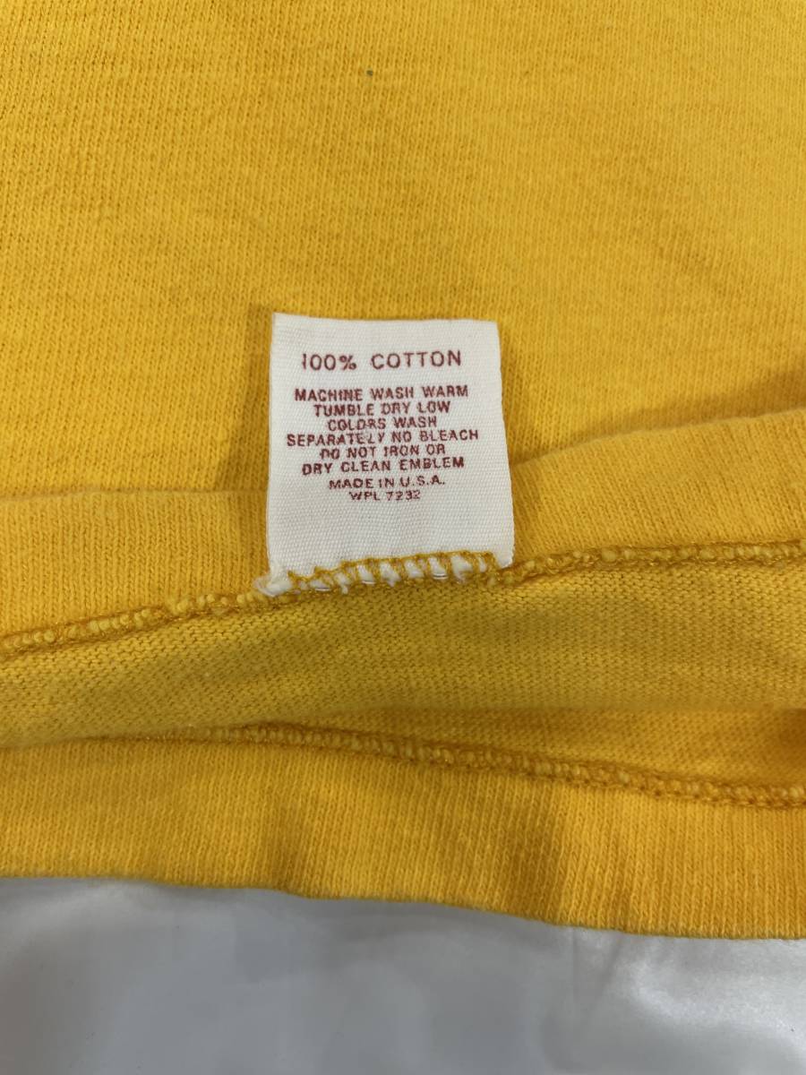 アクセス頂きありがとうございます。 こちらはアメリカ買付古着 ビンテージTシャツです。 全体的に使用感、汚れがあります。 胸に小穴があります。 サイズ L 着丈 70.5㎝ 身幅 50㎝ 肩幅 45.5㎝ 袖丈 20.5 その他、多数出品しております。 こちらもご覧下さい |