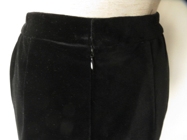 ウエストは両サイドが伸縮するゴム仕様、バックでファスナー、ホック止め、総裏地、バックセンタースリット。