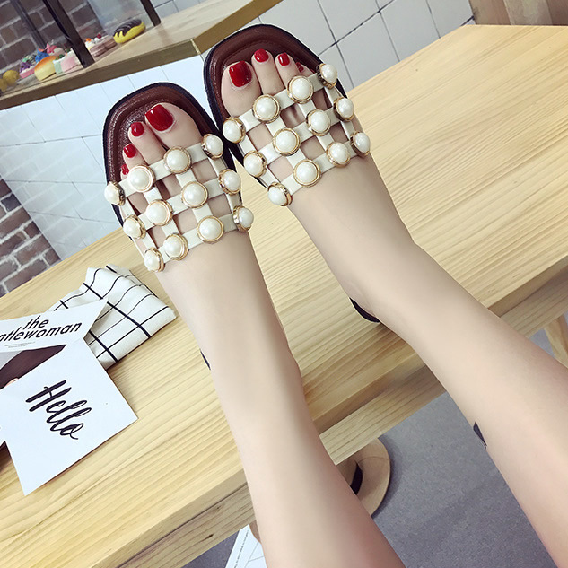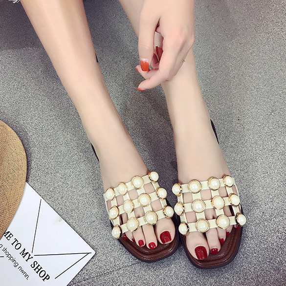 【匿名配送】 パール付きサンダル ホワイト 23.5cm レディース 38 パール サンダル ビーチサンダル ビーサン スポサン 女 白