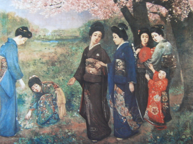岡田三郎助、【桜狩】、希少な額装用画集より、美品、新品額装付、インテリア、春、桜、yy