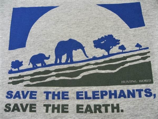 ♪素敵♪お宝♪とってもスタイリッシュで素敵な、テーマは、『SAVE THE ELEPHANTS』、『ロゴマーク&象親子&森林ジャングルデザイン』新品・未使用・展示品・半袖Tシャツで御座います。