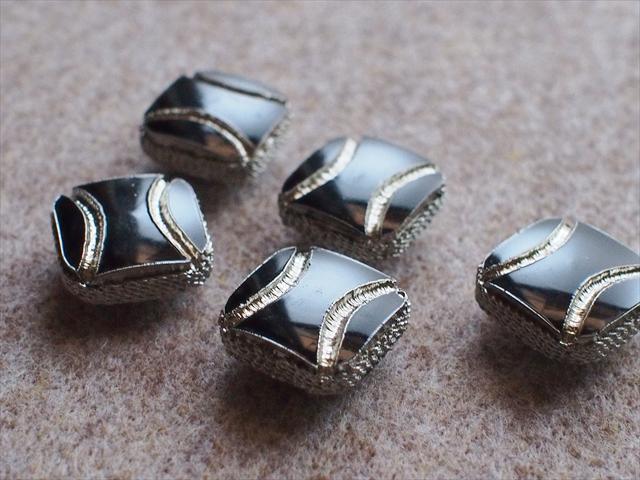 ☆レトロビンテージ手芸雑貨*ボタン・金属に見えるクロ×シルバーモダン・20㎜・5個セット☆パーツデコ人形装飾素材☆