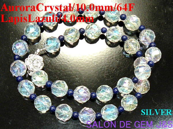 【新品】【大粒オーロラ】【SV:高級天然オーロラクリスタル/天然ラピスラズリ デザインネックレス】(C10.0mm/L 4.0mm)【エレガント】【長さ:約42cm弱】【高級クラブ使用】【本数限定】【赤字大処分】【製作元オークション】【ラッピング無料】