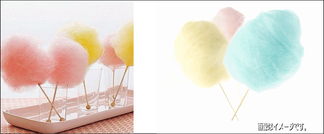 | 色の付いたわたがしが出来上がります。 見た目鮮やかで集客率UPのお手伝いをします。 |