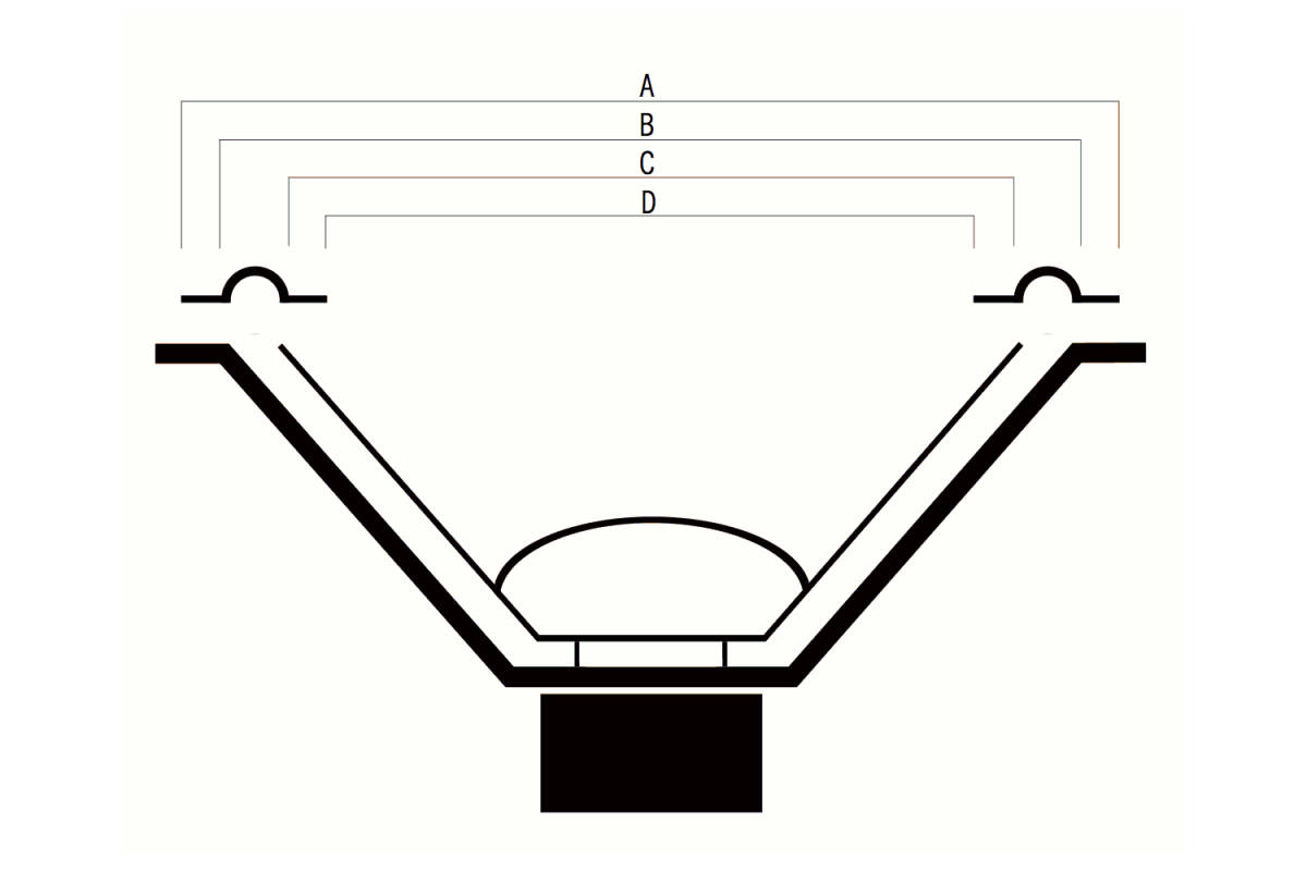 各種スピーカーブランド適合エッジは、スピーカーユニット断面図をご参照いただき、各サイズ( A:エッジ外径 B:ロール外径 C:ロール内径コーンサイズ D:エッジ内径)を明記の上お問い合わせ下さい。