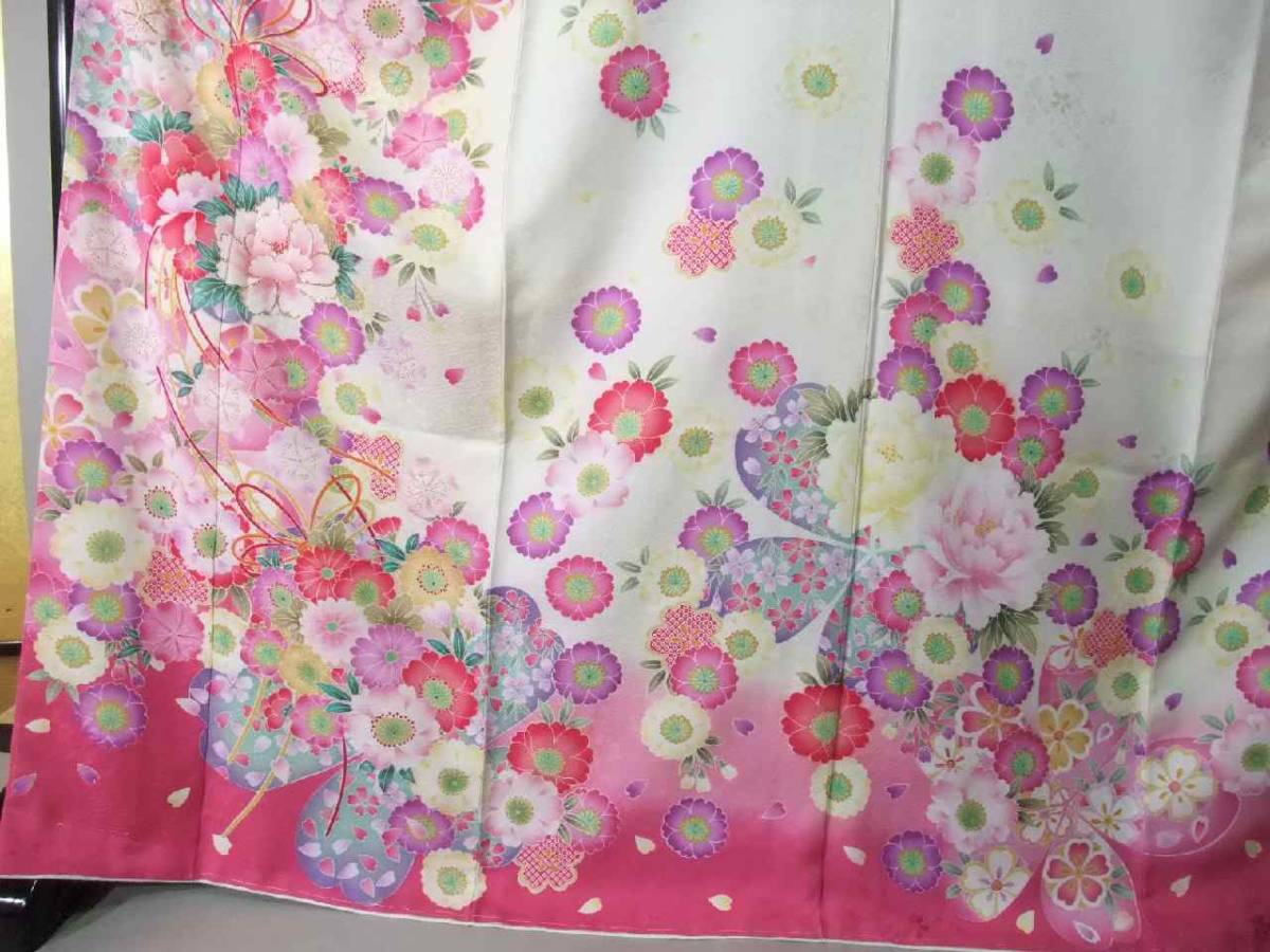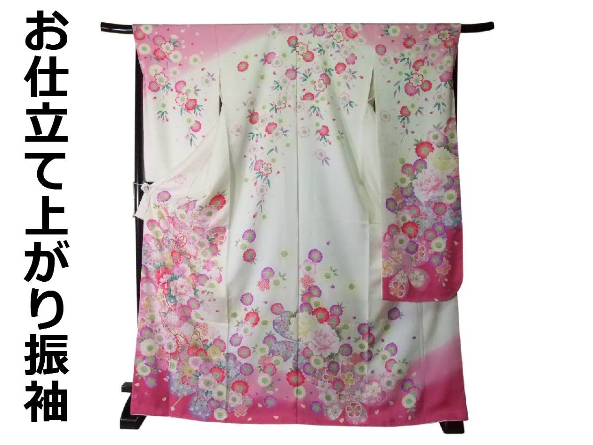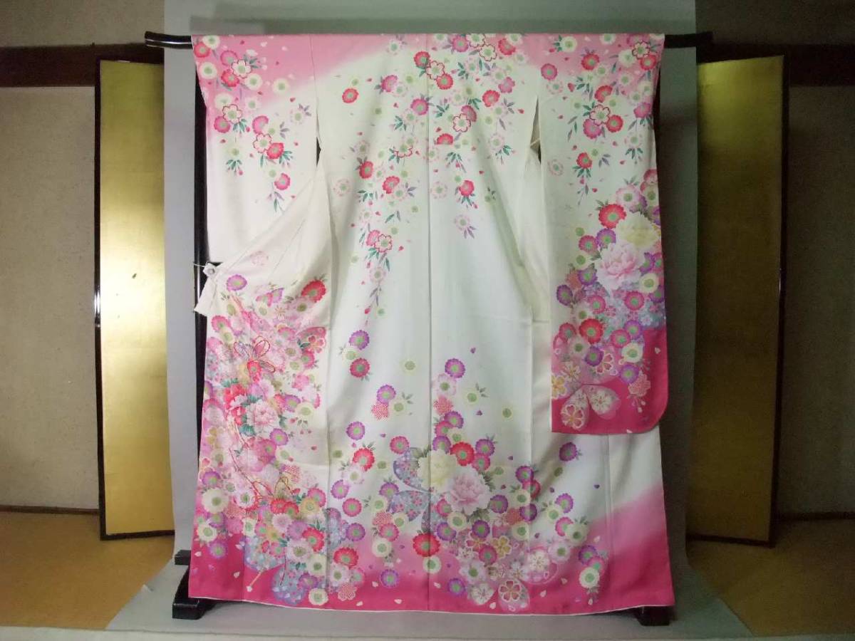 振袖 正絹 lf178 京友禅 お仕立て上がり 白地 百花繚乱文様柄 新品 送料込み