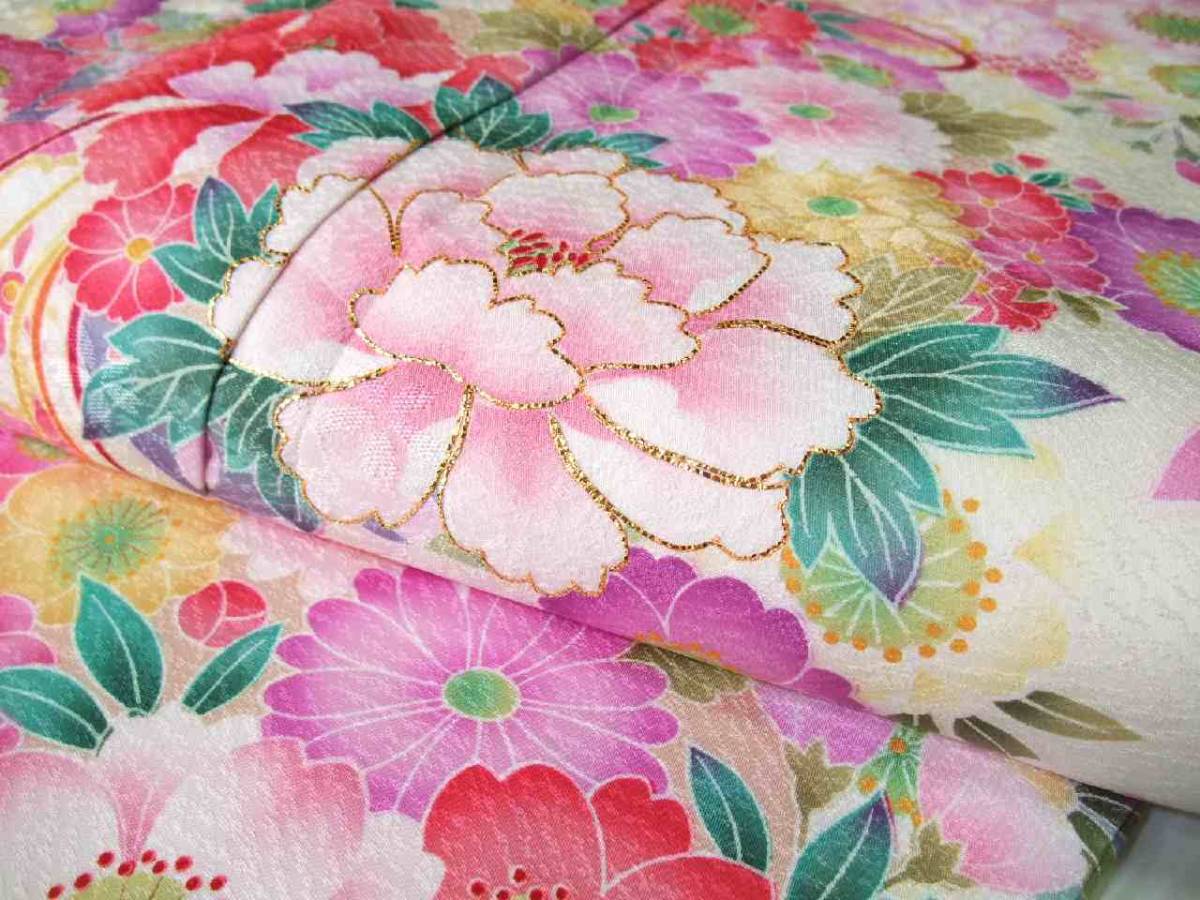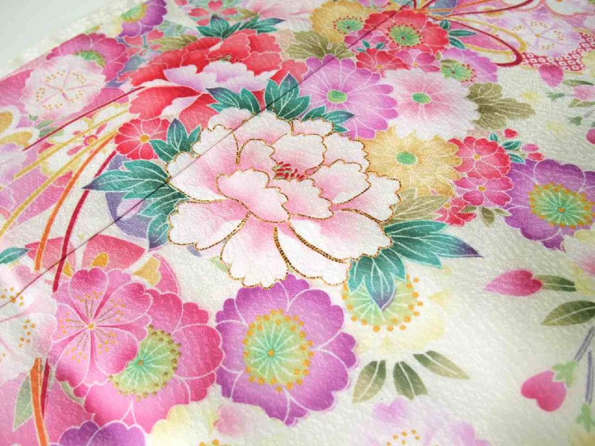 白地を基調した百花繚乱文様柄の新品お仕立て上がり正絹振袖です。