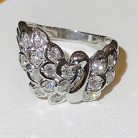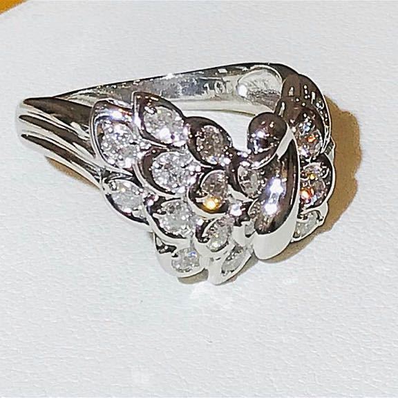 こちらは、Pt900台にダイヤ17石付き白鳥のデザインリングです。